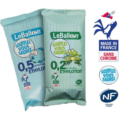 El globo del alcoholímetro uso único Contralco - Bolsillo hinchable patentado NF - Contenancia muy precisa 1,3L - Se mete facilmente en una bolsa o en una bandeja