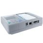 Además, la impresora térmica le permitirá leer en papel sus resultados en papel ECG o en papel grande, a través de una impresora externa conectada al dispositivo. Puede convertir sus datos ECG a PDF para guardarlos en su PC y míralos más tarde. La memoria externa puede almacenar hasta 200 mediciones de ECG, lo que le proporciona una gran seguridad de almacenamiento. Puede usar el dispositivo conectado a la alimentación de CA o con una batería recargable con una vida útil de la batería de más o menos tres horas.