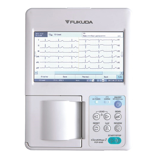 El electrocardiógrafo ECG Fukuda Cardimax FCP-8100 tiene un rango de frecuencia de 00.5 a 150 Hertz. Su frecuencia de muestreo es de 8000 Hz por segundo y por canal. Puede medir entre 30 y 300 latidos por minuto. Su impresión, mediante peine térmico sobre un ancho de papel de 63 milímetros, le permitirá mantener registros y analizarlos.