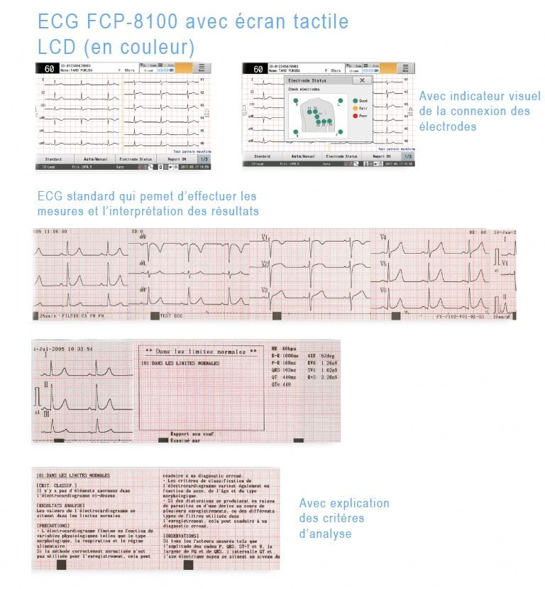 Elogiada por profesionales de la salud durante muchos años, la marca Fukuda goza de una reputación de calidad con los profesionales de la salud. Esta nueva generación de dispositivos de medición de la frecuencia cardíaca satisfará los requisitos de los médicos en términos de modernidad y calidad. El electrocardiógrafo portátil le permitirá realizar mediciones e interpretaciones automáticas con tres pistas de alto rendimiento durante sus análisis.
