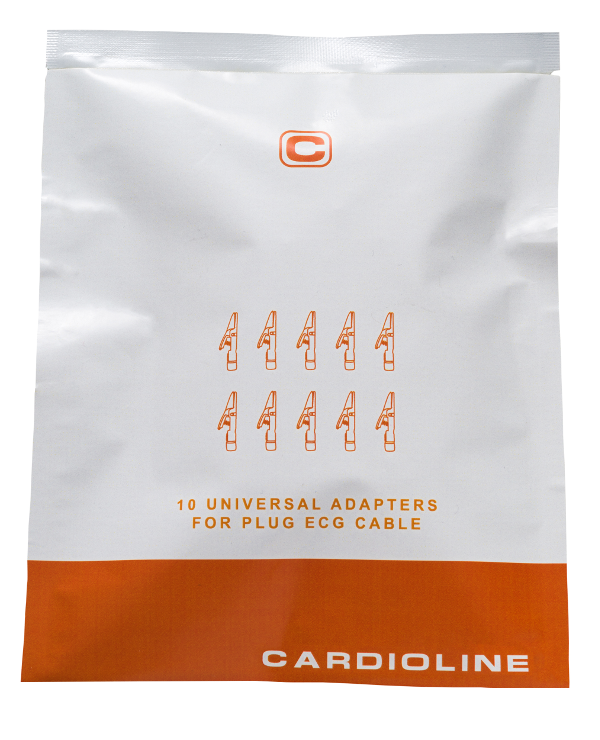 El ECG 100S se suministra con su funda protectora, según la elección: cable con conector banana o de presión, 10 adaptadores banana/presión para electrodos, juego de electrodos ECG con puente o de presión, un paquete de papel plegado en Z (100 x 150 mm - 180 hojas), su cable de alimentación y su manual de usuario.