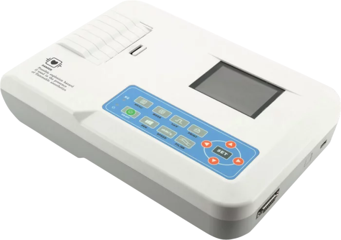 El electrocardiógrafo ECG 300G (3 canales) con interpretación es un equipo médico avanzado diseñado para uso profesional. Permite medir la actividad eléctrica del corazón registrando las señales eléctricas que atraviesan el músculo cardíaco. El dispositivo cuenta con tres canales para registrar las señales, lo que permite un análisis preciso y completo de la actividad cardíaca.