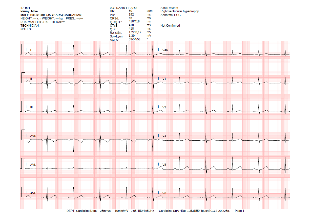 Denominación : Electrocardiógrafo ECG Cardioline Touchecg HD+ Bluetooth (12 canales) para PC o tablet con Windows