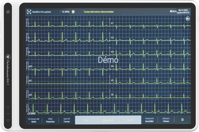 El ECG Cardiomate EVI está disponible en dos versiones : con una pantalla de 7 pulgadas o 10 pulgadas, que ofrece una vista clara del trazado de 12 canales y de la interpretación simultánea.