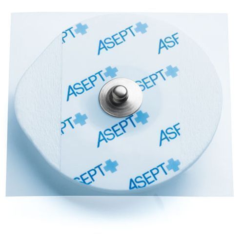 Electrodos ovales Asept InMed, bolsita de 60 - Tamaños disponibles: 51 x 33 mm y 50 x 48 mm - Pregelificados - Soporte en espuma - Con botón a presión