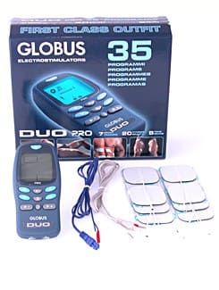 El electroestimulador Globus Duo Pro está dirigido a esos que desean adquirir un electroestimulador de 2 canales (convertibles en 4 canales), sin renunciar a programas ni a prestaciones típicas de los aparatos de gama superior. Está equipado de 35 programas de entrenamiento y de 180 aplicaciones: El programa de deporte cuenta con calentamiento, fuerza máxima, fuerza de resistencia, fuerza explosiva y reactividad. Los programas fitnes, en cambio son de drenaje de muslos, piernas, costado, abdominales y glúteos. Pero también lipólisis anti-celulítica, endurecimiento del cuerpo, tonificación, estética de la cara, y tonificación del pecho. Por último, el programa de recuperación, atrofia de miembros superiores e inferiores, tensión analgésica, cervicales, lumbago y contracturas musculares. Es compacto y fácil de transportar gracias a su estuche de transporte. El dispositivo de electroestimulación os permite trabajar en casa algunas zonas del cuerpo. Gracias a su frecuencia de trabajo de 1 a 20 Hz, su intensidad de 100 lmP lpp por canal y de su ancho de impulso de 50 a 320 µs. Las corrientes utilizadas son EMS y TENS. Las formas de onda emitidas son rectangulares, simétricas y compuestas, todo depende del resultado deseado por la persona. Este electroestimulador Globus Duo Pro está certificado y homologado por la ISO 9001, EN 46001 por los productos elecro-médicos Certificado MDD (Medical Device Directive) Funciona con 3 pilas 1,5V AAA LR03, incluidas en el paquete. Dispone de una garantía de dos años.