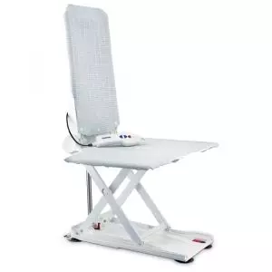 Existen diversas configuraciones disponibles para adaptarse a todos los usuarios: Respaldo reclinable o fijo, versión XL para pacientes de hasta 170 kg y con respaldo con rebordes laterales. - Mando ergonómico con baterías. Electrónica diseñada para bloquear el equipo si no hay suficiente carga. Para recargar se conecta el mando al cargador. Con sistema de conexión del mando fácil y seguro. Base diseñada a fin de mantener el máximo espacio posible en la bañera.