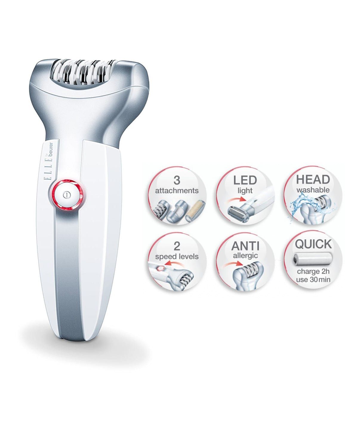| - 3 en 1: depilación, rasurado y peeling | - Elimina hasta el vello más fino para una piel suave como la seda |