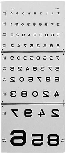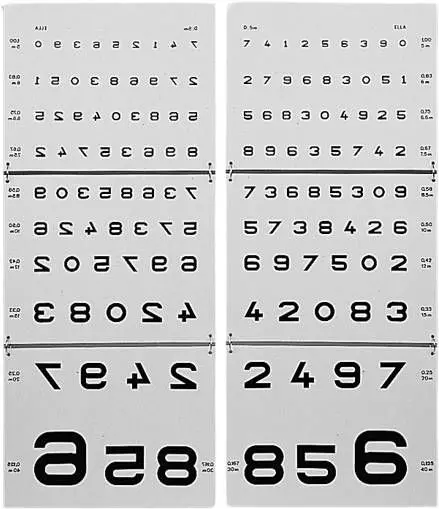 La Escala de Dígitos Optométrica es un instrumento indispensable para medir la agudeza visual de los pacientes en su consulta médica. Está diseñada para la lectura directa a 5 metros y la lectura invertida a 2,50 metros, lo que la hace extremadamente flexible y práctica para los exámenes oculares de todo tipo de pacientes.