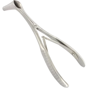 El diseño de doble rama permite una expansión uniforme y controlada de las fosas nasales, facilitando los exámenes y procedimientos nasales.