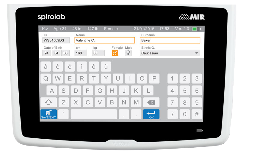 Con una gran pantalla táctil en color de alta resolución, el espirómetro muestra las curvas de flujo-volumen y volumen-tiempo en tiempo real, lo que facilita la lectura e interpretación inmediata de los resultados. Admite los principales parámetros respiratorios, como FVC, CV con perfil ventilatorio y MVV, de acuerdo con las recomendaciones de la ATS/ERS, lo que garantiza mediciones estandarizadas y reproducibles.