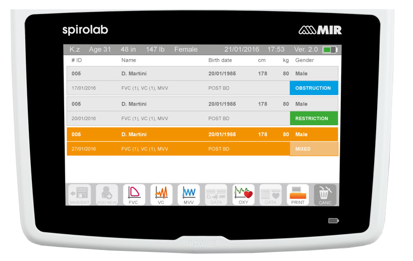 - Comparación de FVC , VC , MVV , PRE / POST broncodilatadores con una amplia gama de parámetros seleccionables