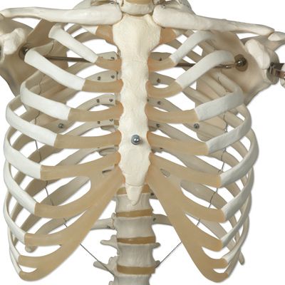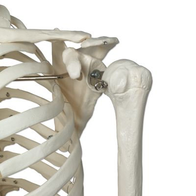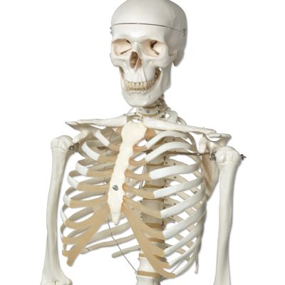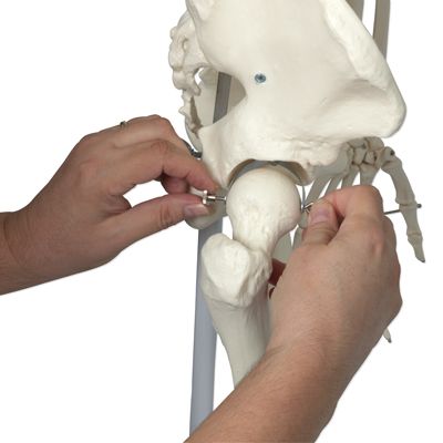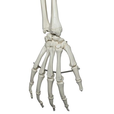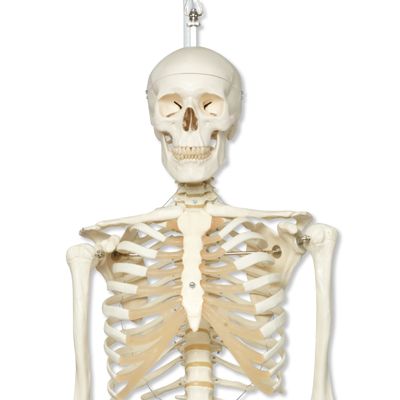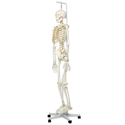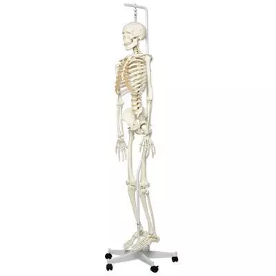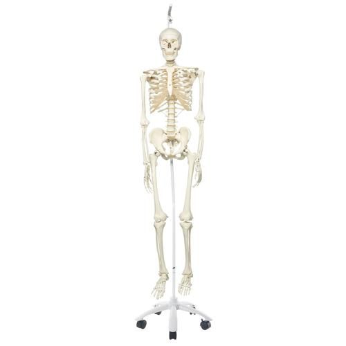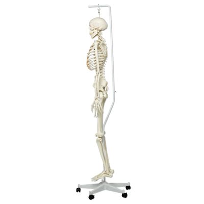 Esqueleto clásico Stan, en soporte colgante de 5 patas A10/1 - Material irrompible y de larga duración - Peso de los 200 huesos muy aproximado al peso real - Tamaño natural - Cráneo montado en 3 piezas.