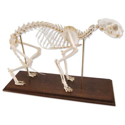 El modelo anatómico de esqueleto de gato 3B Scientific es un útil pedagógico ideal para los veterinarios, el cual les permite conocer la anatomía de los felinos incluyendo sus 230 huesos. El modelo se encuentra parado sobre una base de madera la cual le permite estudiar con total estabilidad al animal. Asimismo, el esqueleto de gato es ideal para comprender el sistema locomotor del gato ya que en este se pueden observar todas sus articulaciones.
