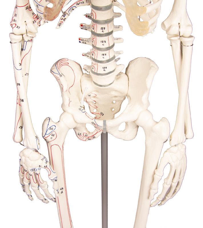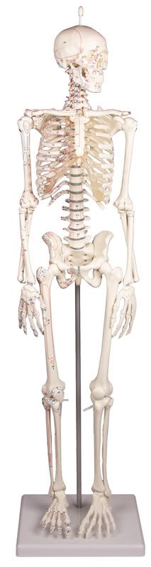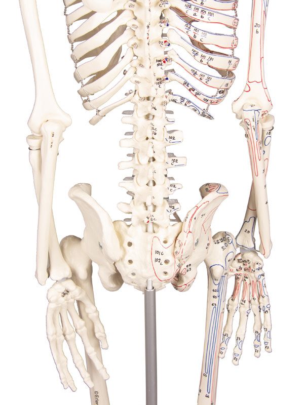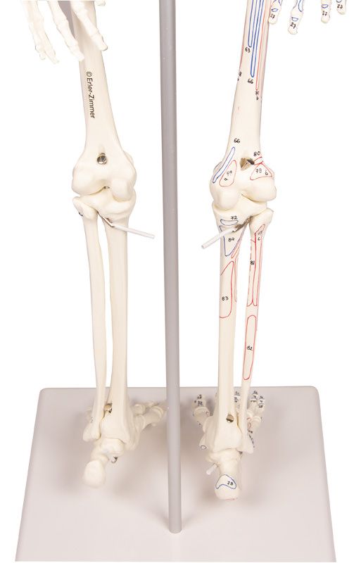 El cuerpo humano es una máquina compleja y la osamenta que lo compone ofrece una estructura sólida indispensable para la movilidad del cuerpo. Este modelo de Esqueleto en miniatura ""Daniel"" con músculos numerados 3035 Erler Zimmer es una representación precisa de la osamenta humana cuidadosamente numerada para facilitar su comprensión. El esqueleto está reproducido en una escala ½.