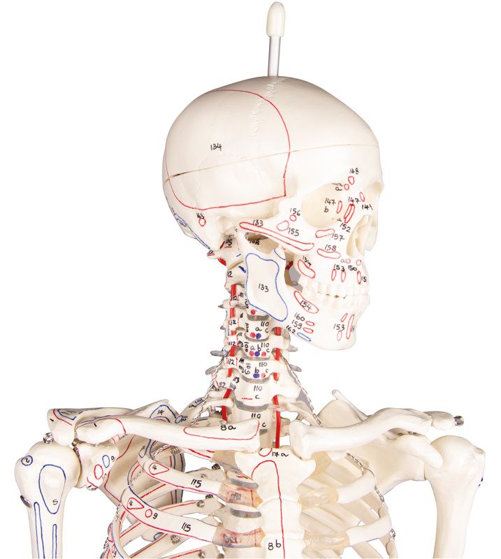 El brazo y las piernas son totalmente móviles permitiendo realizar movimientos realistas. Los hombros, las caderas, las rodillas y las articulaciones del tobillo están fijadas con juntas flexibles permitiendo el movimiento y una posición natural. El cráneo puede separarse en 3 partes, las manos pueden separarse de los brazos al igual que las piernas, que pueden desmontarse al nivel de las rodillas y los tobillos.