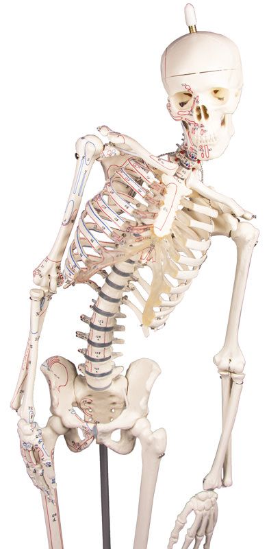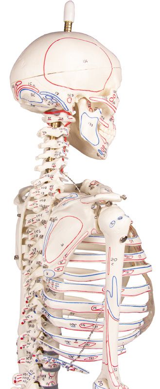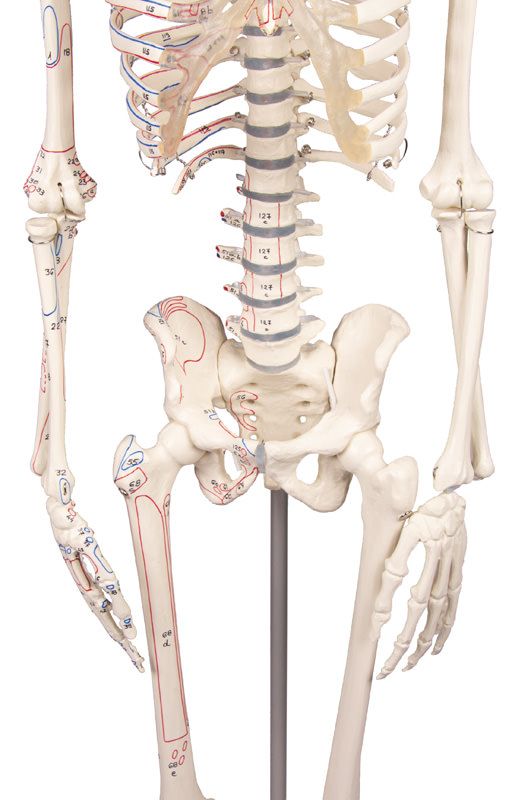 El brazo y las piernas son totalmente móviles permitiendo realizar movimientos realistas. La columna vertebral es flexible como una verdadera columna vertebral, lo que permite realizar demostraciones realistas tanto para estudiantes como para un paciente que sufra problemas asociados a las articulaciones o presente problemas de espalda.