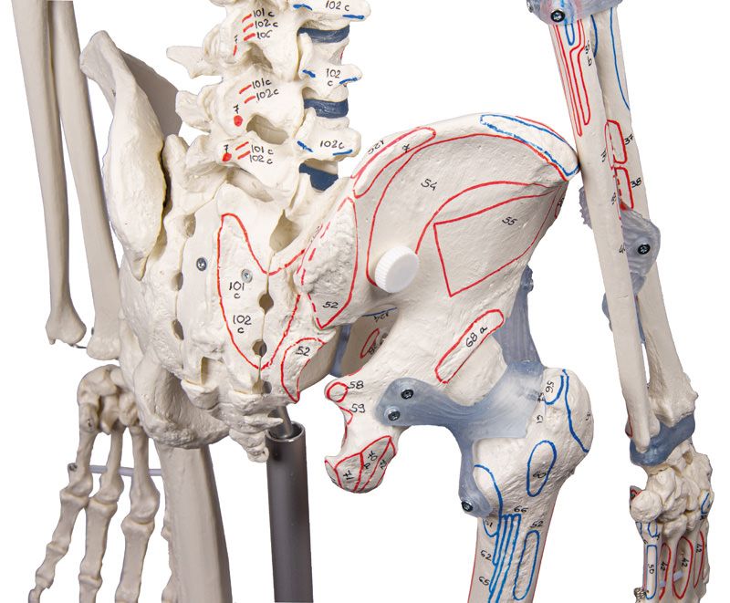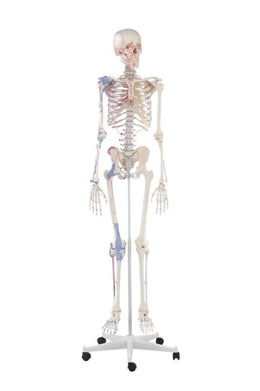 El esqueleto humano Bert presenta los ligamentos de articulación para los hombres, los codos, la pelvis y las rodillas. También representa el origen de los músculos.