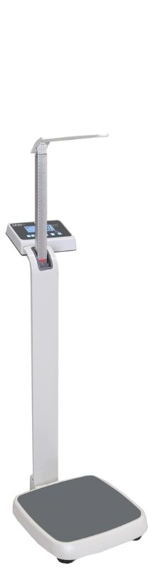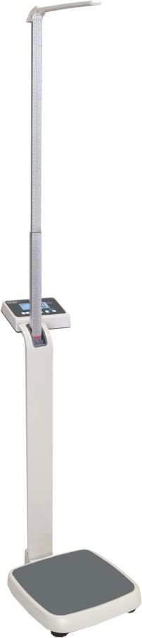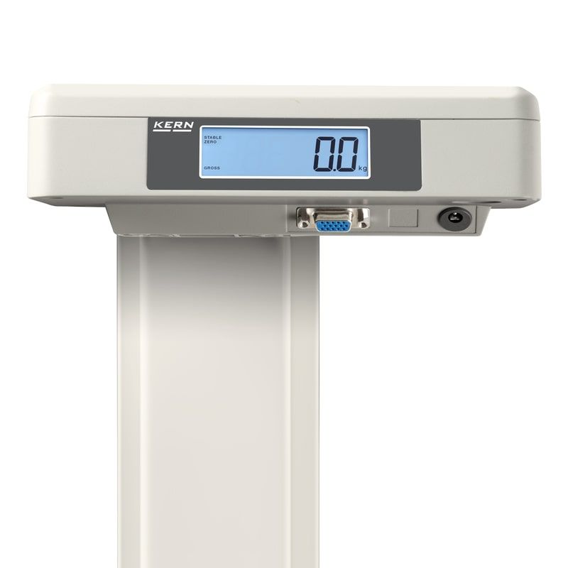 La estación de medición Kern MPE - Clase III destaca por ser un dispositivo completo dedicado a pesar pacientes y medir su altura, especialmente diseñado para profesionales sanitarios. La ergonomía está en el centro de su diseño, con una doble pantalla estratégicamente situada en el monitor de la báscula electrónica de columna Kern. Esta disposición facilita la lectura, con una pantalla visible para el paciente en la parte superior y otra en la parte posterior para el profesional sanitario. El tallímetro telescópico integrado mide la altura del paciente, mientras que la báscula electrónica mide su peso.