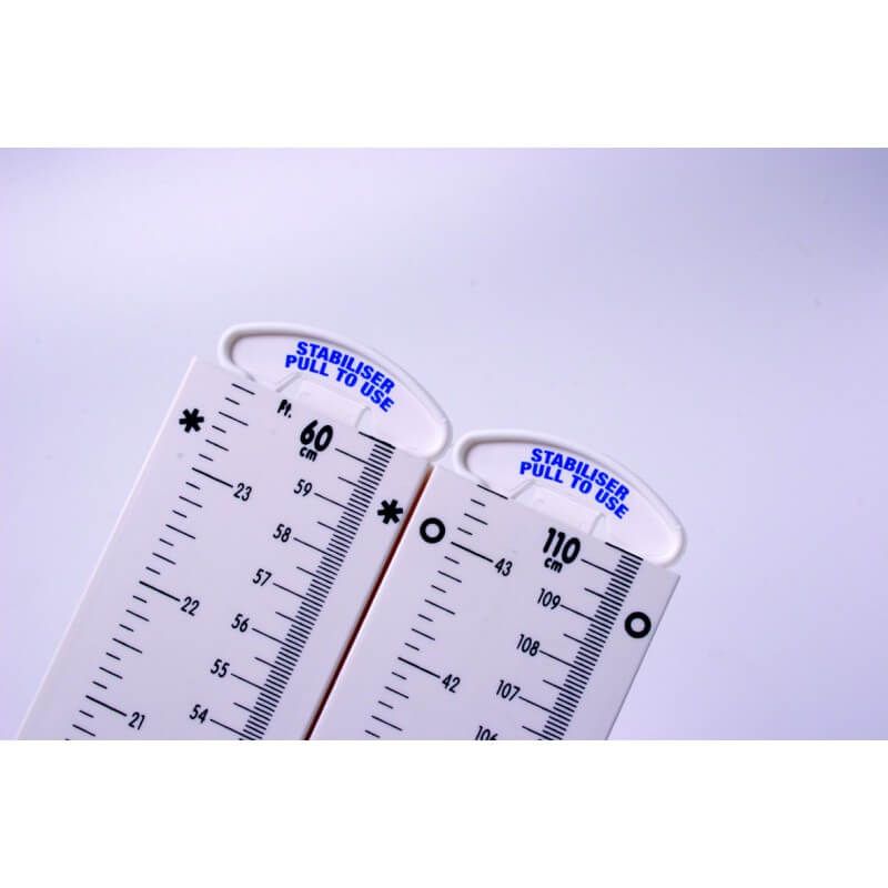 El Estatimetro portátil Leicester Tanita HR 001 eestá hecho de plástico reforzado y puede medir la altura en casi todas las situaciones.