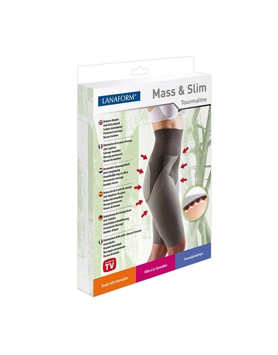 La Faja adelgazante Mass & Slim de Lanaform cuenta con una tecnología innovadora. Esta compuesta por cientos de esferas de Tourmalina que permiten disminuir el contorno de los muslos y de la cadera. Esta faja afina inmediatamente la silueta gracias a su efecto moldeador sobre muslo, cadera, cintura y vientre. La faja adelgazante de Lanaform también actúa en el largo plazo gracias al calor que emana del tejido, lo que favorece la irrigación de las células de grasa y de la circulación sanguínea, perfecto para combatir la celulitis y la piel de naranja.