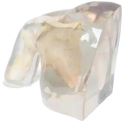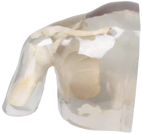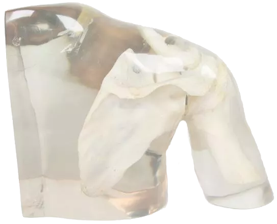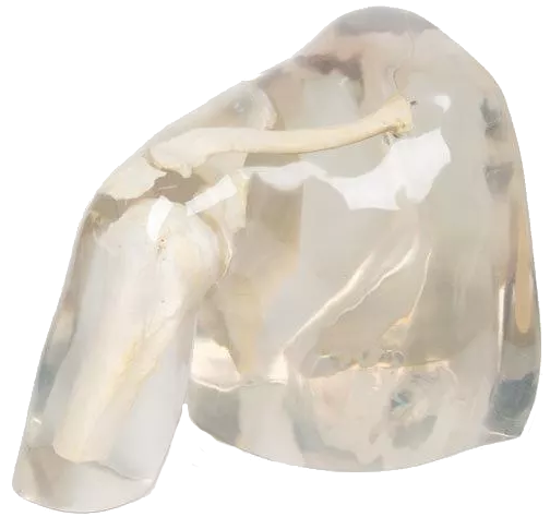 Explore la anatomía del hombro con el Fantasma Radiográfico Erler Zimmer, un modelo de alta gama diseñado para un aprendizaje preciso y repetible. Combinando hueso humano real con un cuerpo de plástico transparente u opaco, permite realizar radiografías realistas del húmero y la cintura escapular sin riesgo.