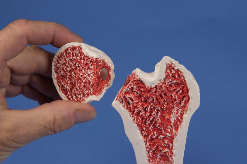 La osteoporosis se caracteriza por una fragilidad ósea que puede causar fracturas principalmente a nivel del fémur, las costillas y las vértebras. La mayoría de las veces es provocada para una falta de calcio y/o vitamina D.