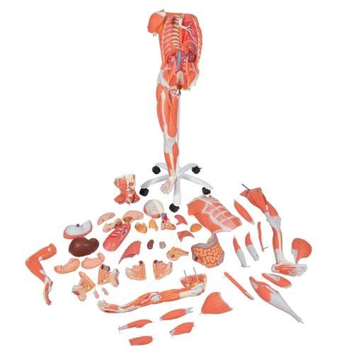 Figura con músculos de doble sexo, desmontable en 45 piezas - Esta réplica humana de 3/4 del tamaño natural muestra con detalle la musculatura profunda y superficial además de los principales nervios, vasos, tejidos y órganos del cuerpo.
