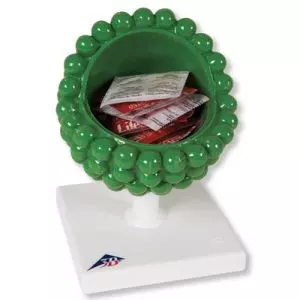Este modelo de Flor de la patata (Solanum tuberosum) 3B Scientific representa la zona del carpelo. El complejo con pétalos y estambres se puede extraer para garantizar un estudio preciso y detallado de la vaina.