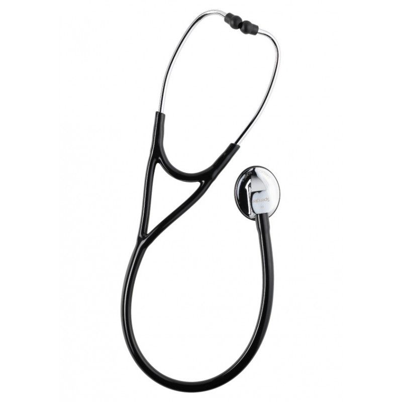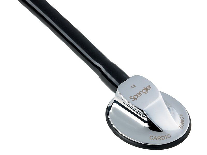 El estetoscopio Spengler Cardio Sonic de color negro es muy apreciado por su diseño y gran comodidad de uso. Este instrumento tiene un alto desempeño y así responde perfectamente a las exigencias de los profesionales en materia de sensibilidad acústica. El dispositivo es utilizado por cardiólogos, neumólogos e incluso anestesiólogos de cuidados intensivos que desean un excelente rendimiento. La campana de acero inoxidable le permitirá escuchar sonidos de alta y baja frecuencia sin tener que darle vuelta durante el examen. El anillo metálico anti frío está presente para la comodidad del paciente. La tubuladora del estetoscopio simple Cardio Sonic Spengler tiene un doble conducto interno para un mejor aislamiento acústico. Los binaurales son ligeros y se orientan según la anatomía del médico.