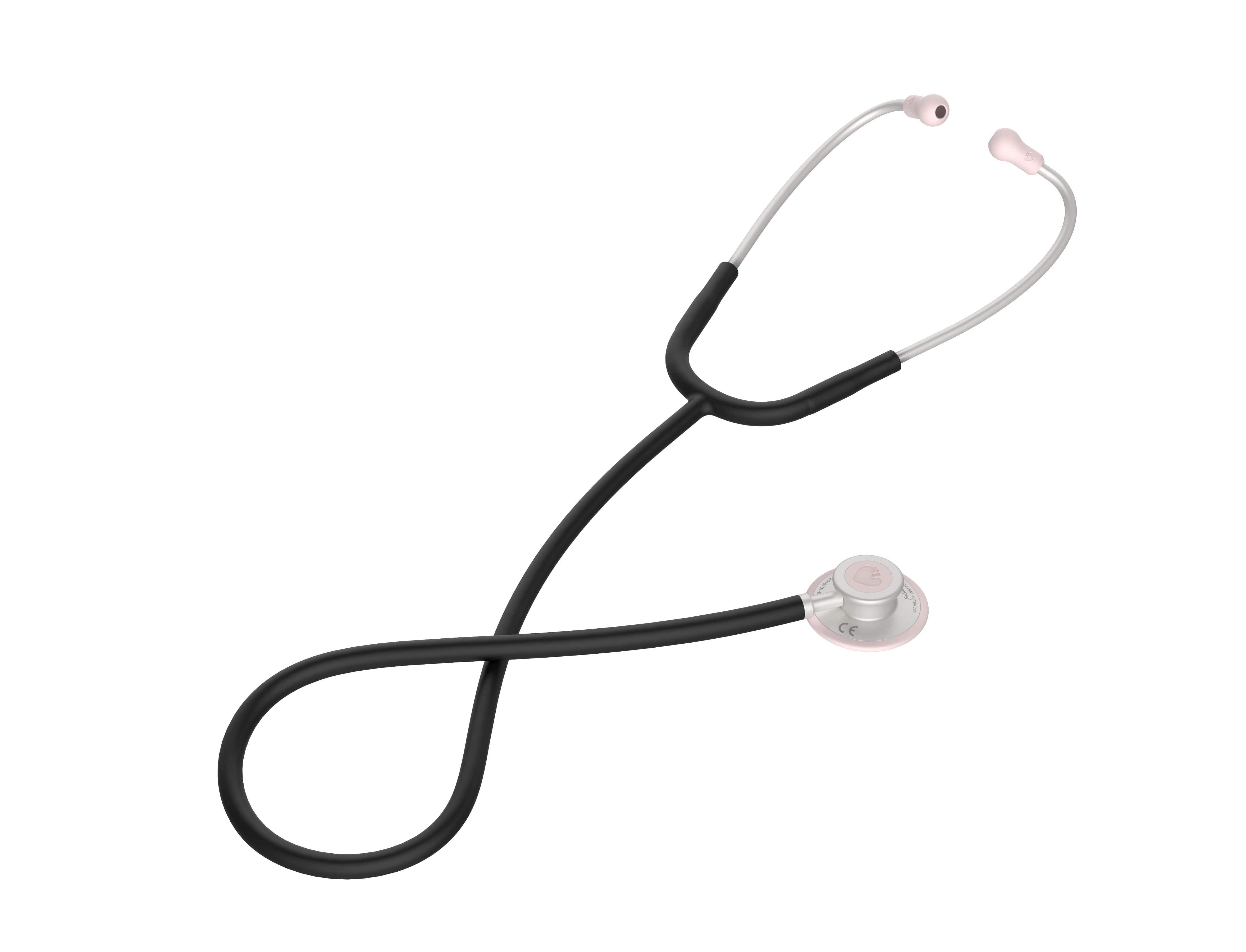 El fonendoscopio está fabricado con una aleación de zinc cromada recubierta de un color que hace juego con los tubos, el anillo antifrío y las olivas. Los binaurales de latón cromado se adaptan perfectamente a la anatomía del conducto auditivo, proporcionando la máxima comodidad de uso. Las olivas y los tubos son de PVC sin látex y están atornillados a los binaurales para garantizar una excelente hermeticidad acústica. El estetoscopio es adecuado para los brazaletes gracias a sus finos bordes adaptados a los extremos del brazalete del tensiómetro. El estetoscopio simple Pulse® II con campana sencilla Spengler está disponible en varios colores como: negro, rosa claro, coral, azul y verde para la versión pediátrica (con motivos infantiles).