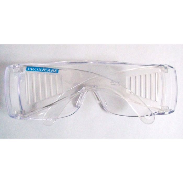 - Un par de gafas Proxicare de policarbonato transparente perfectamente protege los ojos.