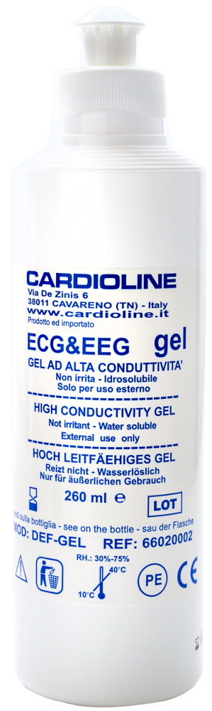 Cardioline presenta su gel para electrodos de ECG. El frasco tiene una capacidad de 260 ml. El lote está compuesto por 35 frascos.