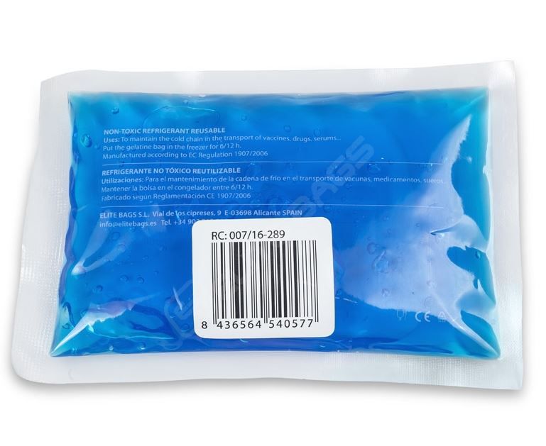 Características técnicas del gel frío reutilizable para maletín COOL'S Elite Bags