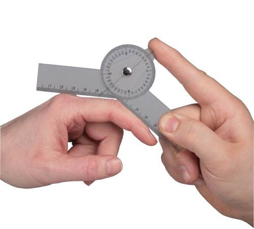 Este goniómetro para dedos en plástico WM25 Erler Zimmer es útil para medir los ángulos de los dedos de la mano. De esta manera, el goniómetro sirve para medir los ángulos de movimiento de las manos y los pies incluyendo todas sus articulaciones. El goniómetro puede medir angulos de hasta 180° (si se usa en su ángulo de semicírculo) o de hasta 360° (si se usa en su ángulo de círculo completo). Utilizando estos datos, un médico puede medir el ángulo de las falanges de los dedos de manera individual.