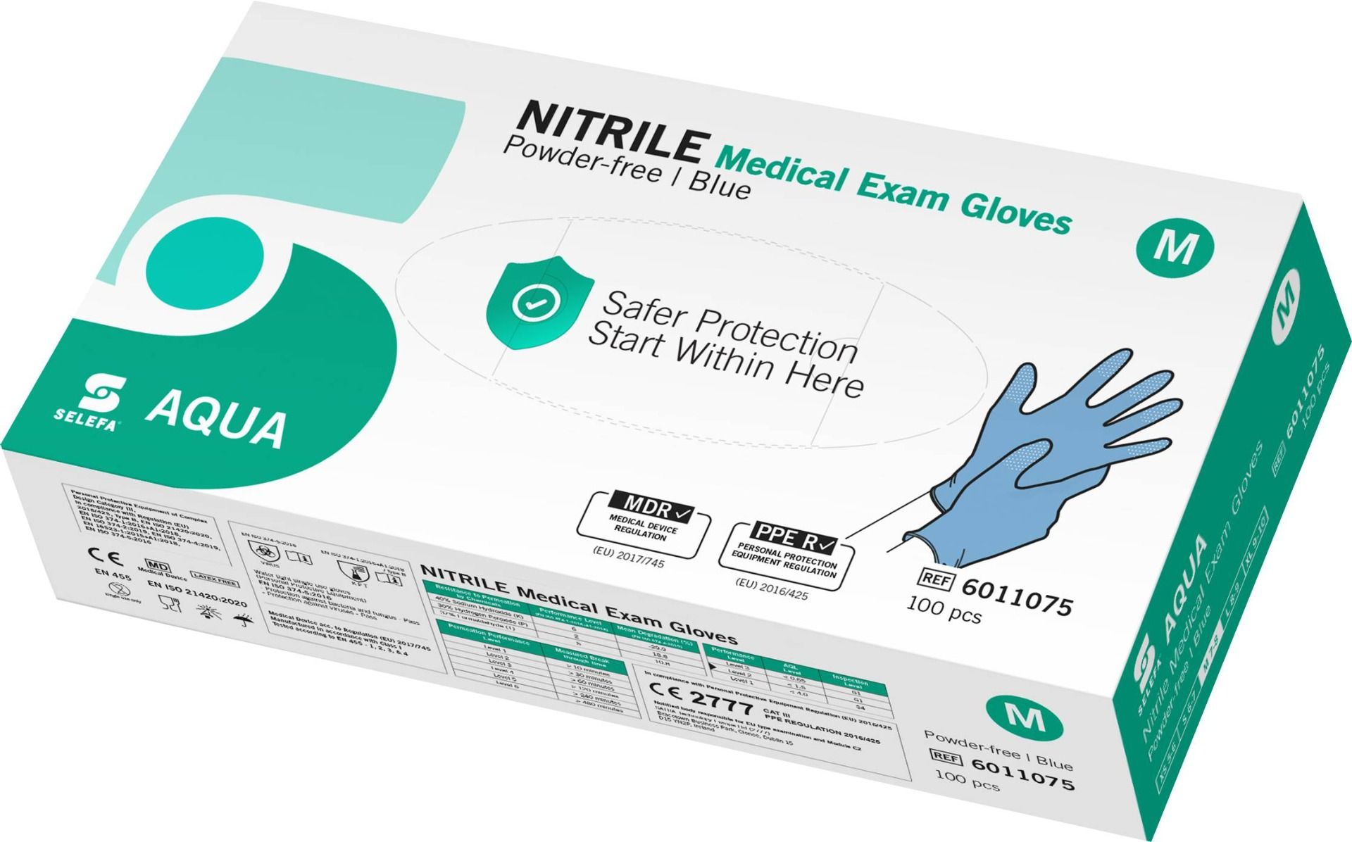 Al elegir los guantes de nitrilo sin polvo Aqua, puede estar seguro de una protección constante, una precisión óptima y un confort duradero todos los días.
