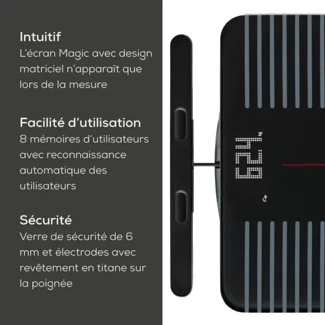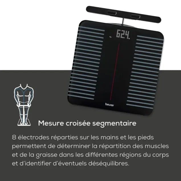El Beurer BF 990 WiFi es un impedanciómetro conectado de alta gama que ofrece un análisis corporal completo y preciso. Gracias a sus 8 electrodos y su mango telescópico, permite la evaluación segmentaria de diferentes zonas del cuerpo, para obtener mediciones fiables y detalladas.