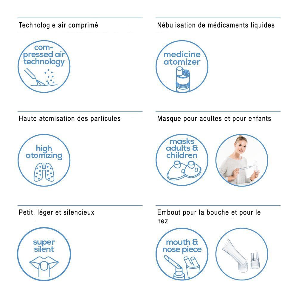 El nuevo aparato para nebulizar Beurer IH60, es la novedad entre los inhaladores ya que asegura una alta eficacia gracias a su tecnología de aire comprimido la cual permite una alta capacidad de nebulización (>0,25 mL/mn) de los medicamentos líquidos. Gracias a su tecnología, se presenta una gran proporción de partículas que son respirables y que presentan un tiempo de inhalación corto. El nebulizador portátil Beurer IH60 es ideal en caso de resfriado, asma y enfermedades de las vías respiratorias tanto inferiores como superiores. El tratamiento que aporta es perfecto para prevenir y/o atenuar las enfermedades o para acelerar la curación de estas, teniendo en cuenta que toda medicina debe haber sido previamente prescrita por un médico.