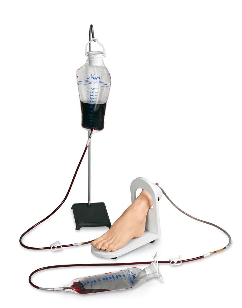 El modelo de Inyección Intravenosa de Pie de Adulto Erler Zimmer R11005 dispone de un sistema que le permite determinar y verificar si la aguja de la inyección se encuentra en la posición correcta. Además, un fluido de sangre puede ser inyectado.