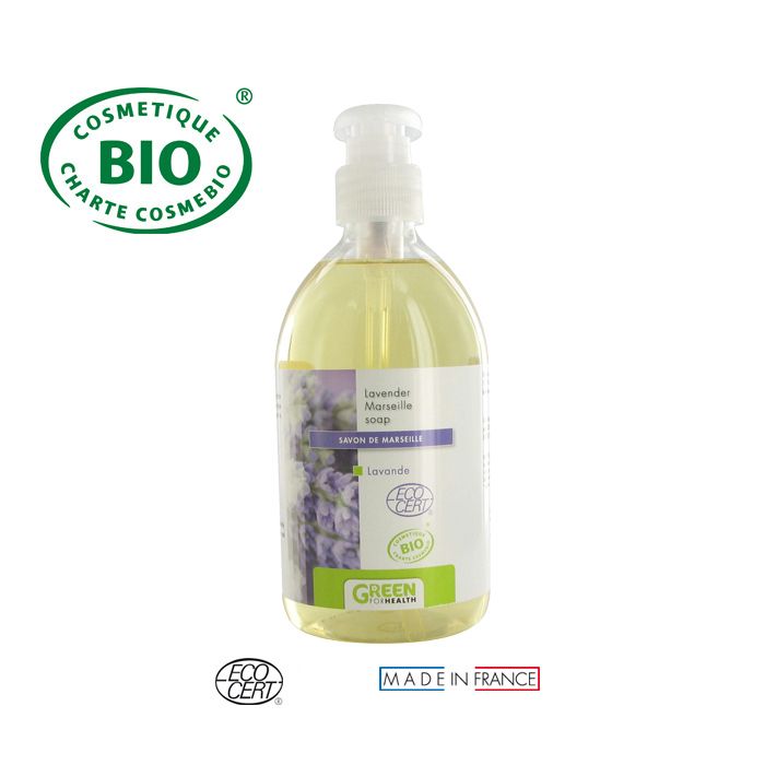 Jabón de Marsella Tónico Bio Lavanda 500 ml Green For Health - 100% natural - Sin colorantes - Certificado por ECOCERT - 11,21% de los ingredientes son de agricultura ecológica
