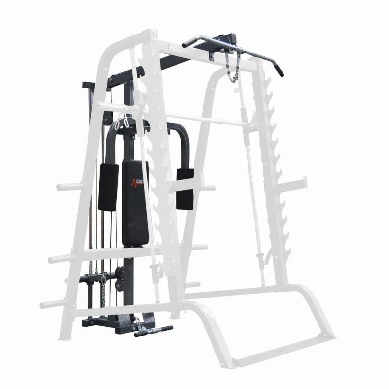 La estación crossfit Smith Machine DKN es una estructura en acero robusto y muy estable. Con una barra de guiado integrado de 220 cm de diámetro Olímpico 51, puede estar seguro de realizar un entrenamiento completo. Su diseño mecánico se puede inclinar hasta 7 grados para así acompañar el movimiento natural de su cuerpo durante la ejecución del ejercicio. La multi posición de la jaula de musculación a barra libre permite trabajar en toda seguridad gracias a los brazos de seguridad extra largos (42cm) garantizando un aprovechamiento del aparato en toda seguridad. Las dimensiones de la jaula Crossfit, pero permiten una sesión completa con la que trabajará todos los músculos de su cuerpo.
