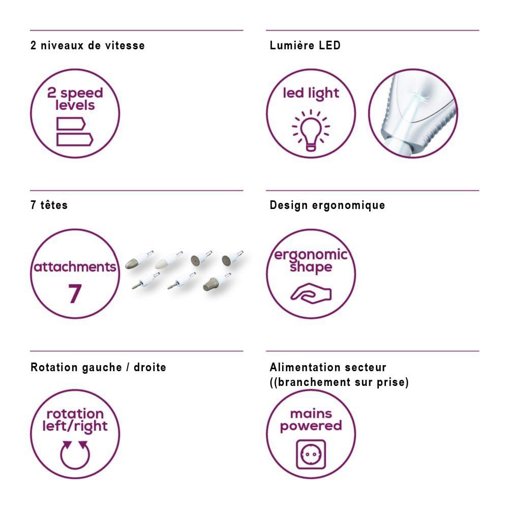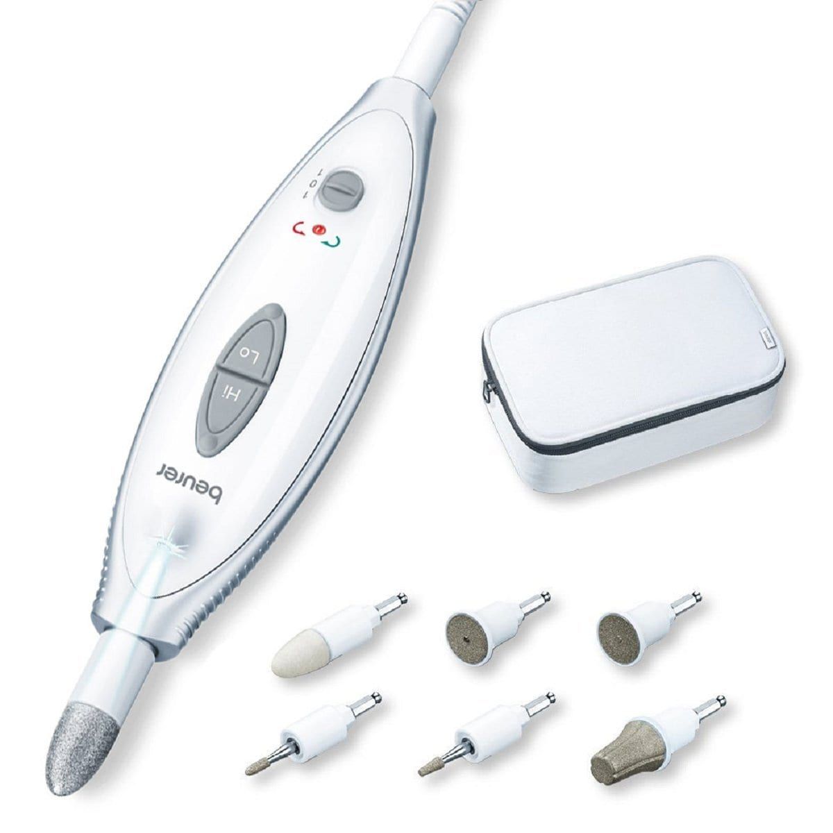 Juego de manicura pedicura Beurer MP 41 - Kit para profesionales y particulares - 7 adaptadores de alta calidad - Rotación derecha y izquierda - Con luz LED clara - Garantía : 3 años
