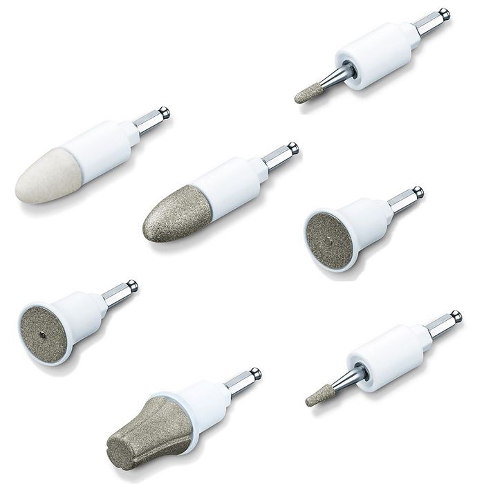 El Juego de manicura/pedicura Beurer MP 41 es un aparato completo que se entrega con 7 adaptadores diferentes: