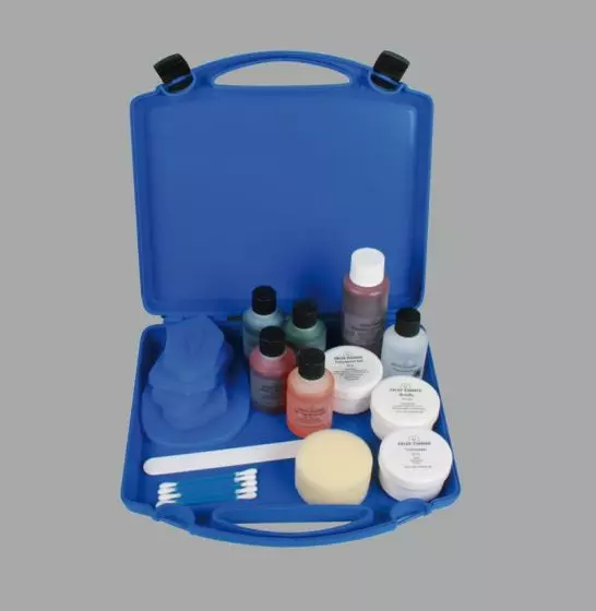 Con el kit de maquillaje para simulación de heridas comunes WS03 Erler Zimmer es posible crear heridas extremadamente realistas para el entrenamiento de las técnicas de primeros auxilios. Es muy fácil de usar incluso para las personas no habituadas a maquillar. Las heridas pueden colocarse fácilmente en uno mismo o sobre otra persona sin necesidad de conocimientos específicos.