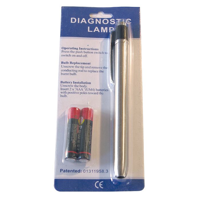 La lámpara de diagnóstico está equipada con un interruptor de encendido. Práctica y discreta, la lámpara es un instrumento ideal para todo el personal de enfermería. El producto viene con las pilas.