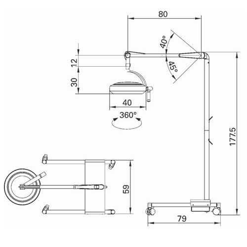 La Lámpara de reconocimiento Derungs Saturn LED 30 F está equipada con tecnología LED la cual le garantiza una capacidad luminosa de 55000 LUX / 1.0 m. Asimismo, posee las siguientes particularidades: