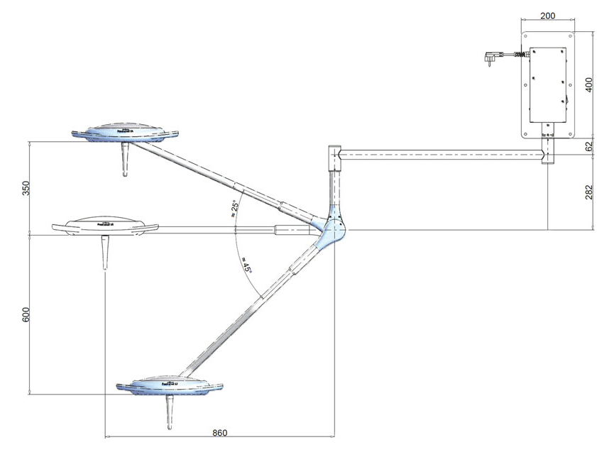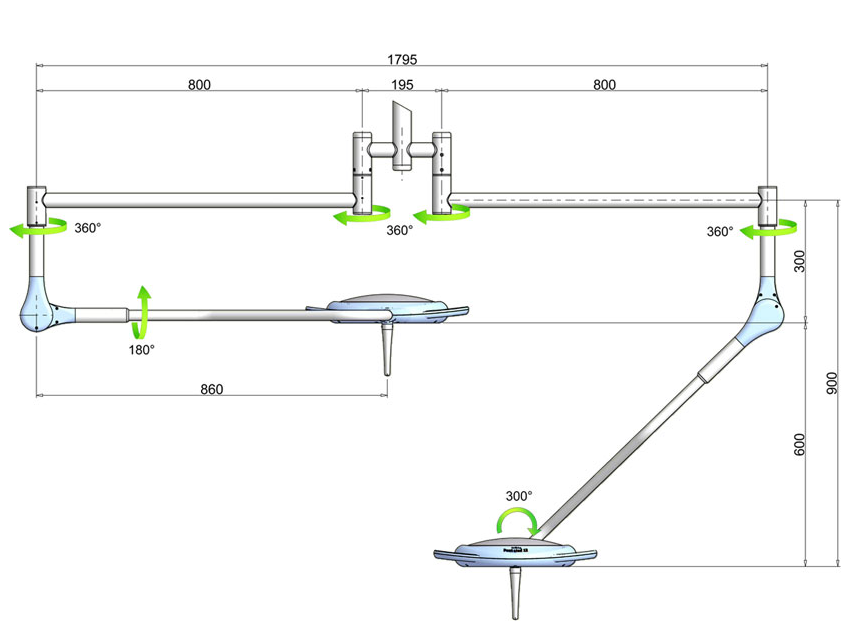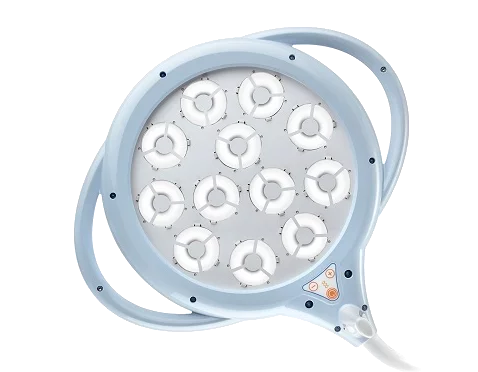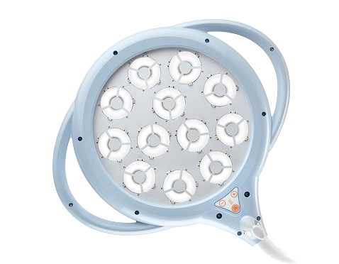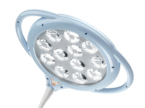 La lámpara de cirugía LED Pentaled 12 de Rimsa LED Pentaled 12 Rimsa tiene una temperatura de color de 4500 K y un índice de reproducción cromática (IRC) superior a 95. Los LED tienen una vida útil de 50,000 horas y el haz de luz tiene un ángulo de 60°.