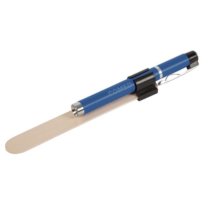 Lámpara mini-bolígrafo con soporte para depresor lingual - Proporciona una iluminación potente y bien definida para los exámenes - Bolígrafo de acero inoxidable - Soporte para depresor lingual de plástico - Depresores linguales de madera - Peso neto: 61 g