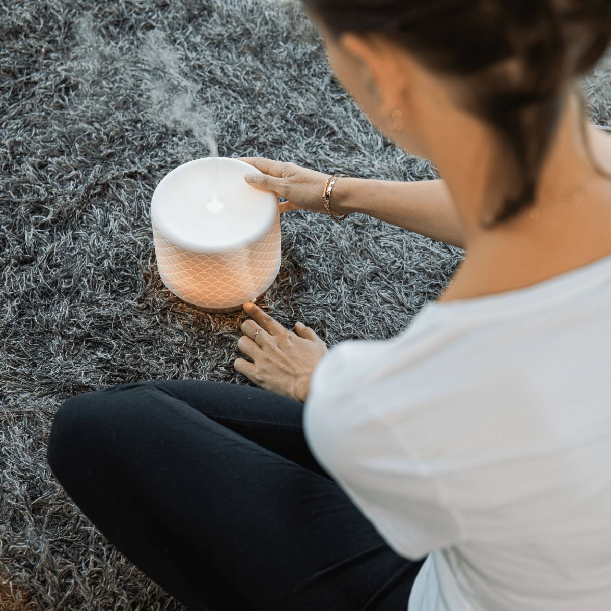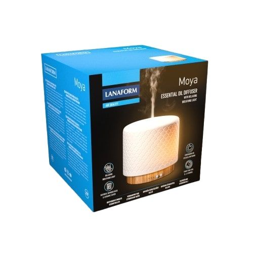 El difusor de aceites esenciales Lanaform Moya combina rendimiento y diseño natural para transformar su espacio en un remanso de tranquilidad. Gracias a su silenciosa difusión ultrasónica y a su generoso depósito de 280 ml, ofrece una difusión prolongada y personalizable, ya sea de forma continua o por ciclos.