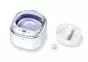 El aparato posee un depósito de agua de 550 ml en acero inoxidable para meter el líquido necesario para la limpieza de los objetos. Se entrega con una cesta para colocar los pequeños elementos y poder así limpiarlos sin estropearlos. Existen 5 programas de limpieza de diferente duración para que el usuario elija el programa que más le convenga.